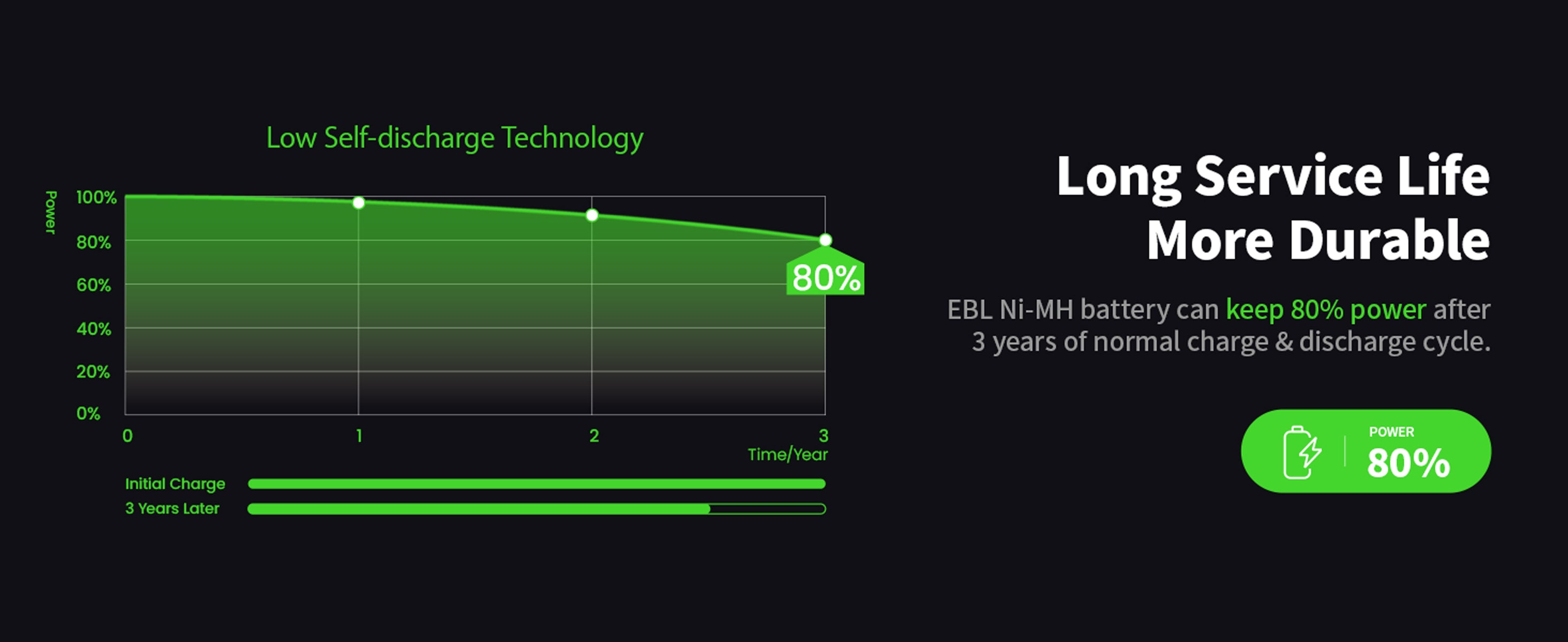 Long-Lasting Power: Premium Ni-MH batteries with high-density technology for extended device usage.