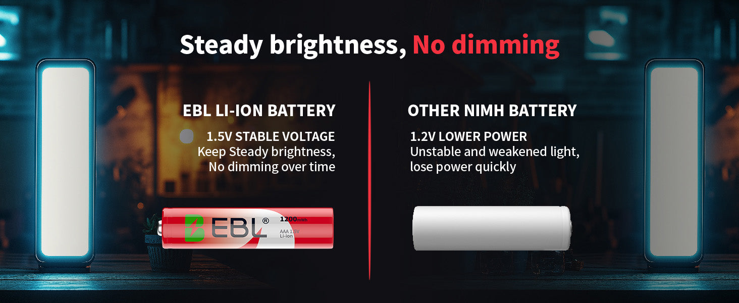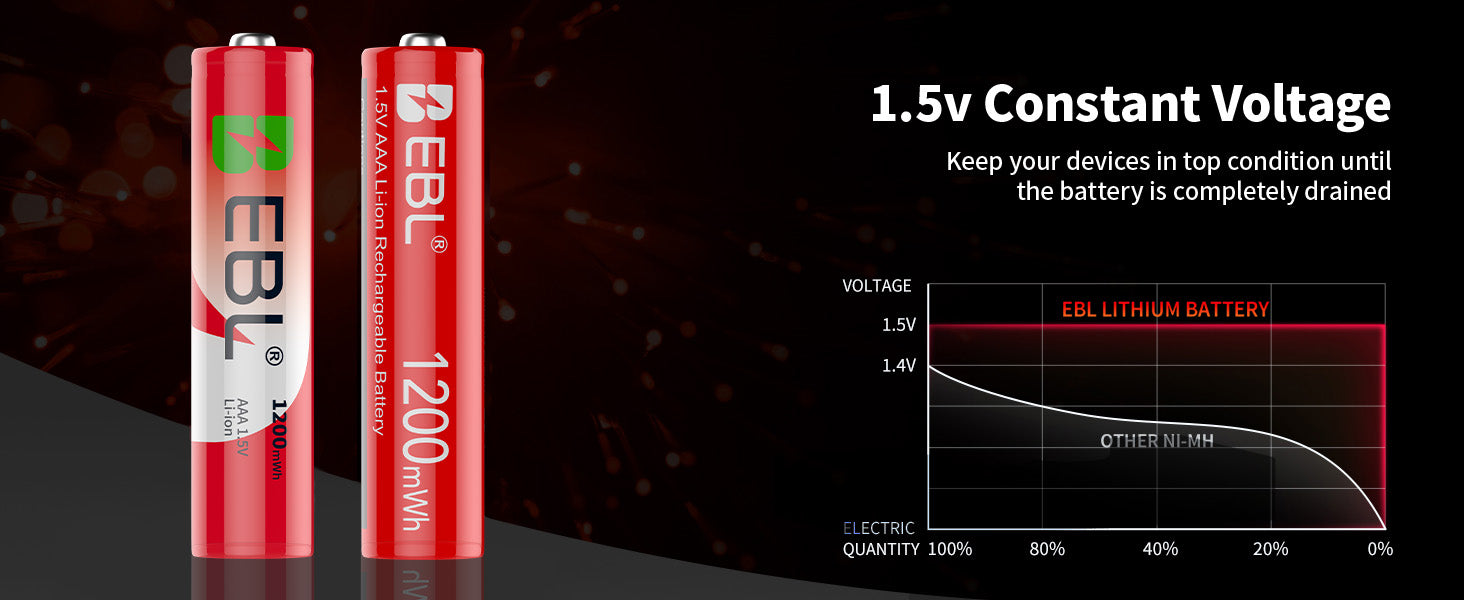 Alta capacidad: Las baterías de litio AAA EBL de 1200 mWh proporcionarán una potencia ultra fuerte para que sus dispositivos funcionen bien y durante más tiempo.