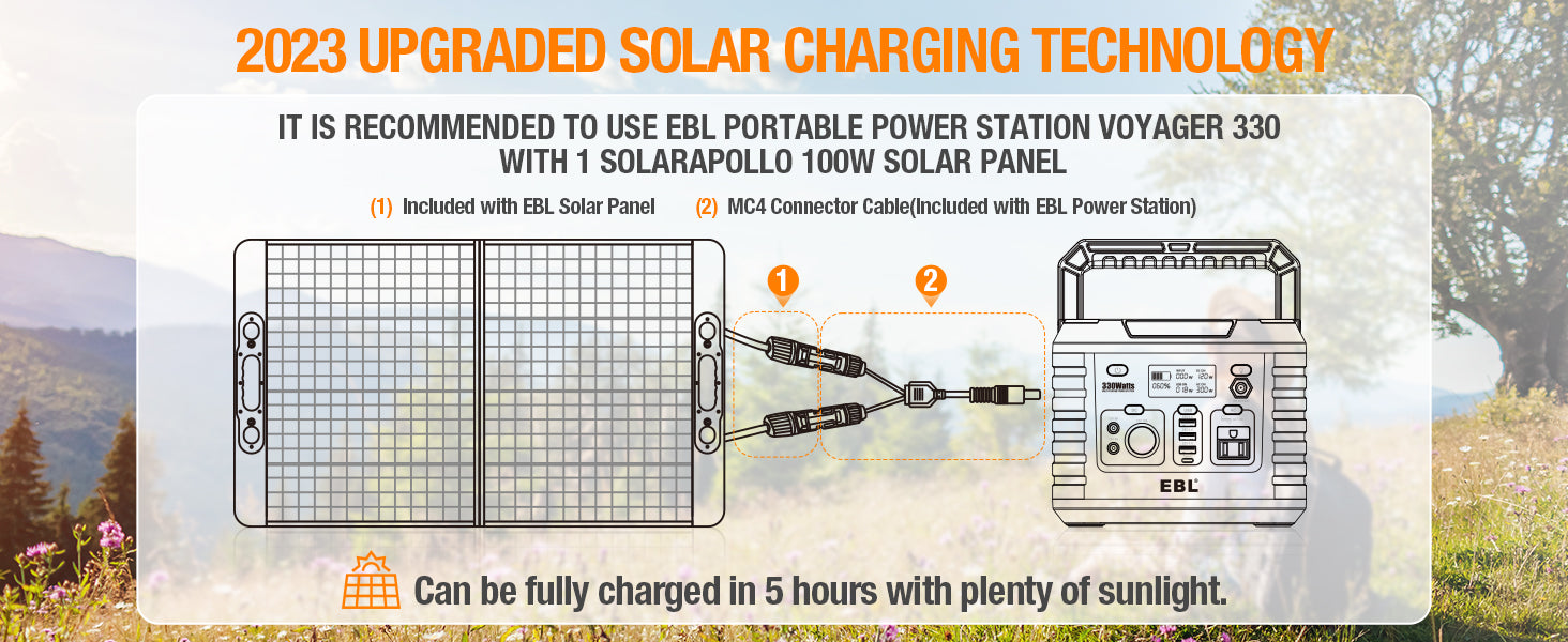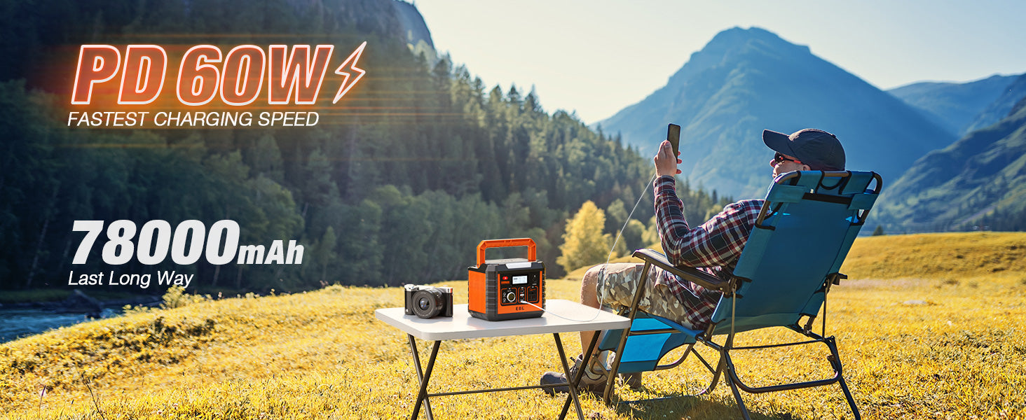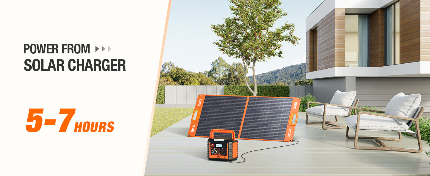 Solar Energy & Green Power: The EBL 330W power station is solar-compatible, offering green power solutions for outdoor activities and emergencies, enhancing your outdoor experience with clean energy.