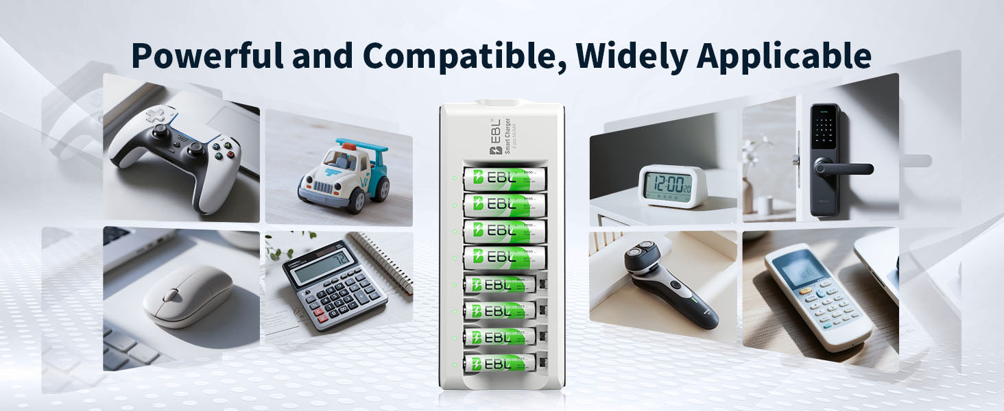 Cargador de baterías recargables: Cargador individual EBL mejorado para baterías recargables AA y AAA, compatible con 1 a 8 baterías recargables Ni-MH, Ni-Cd, dobles AA y triples AAA.