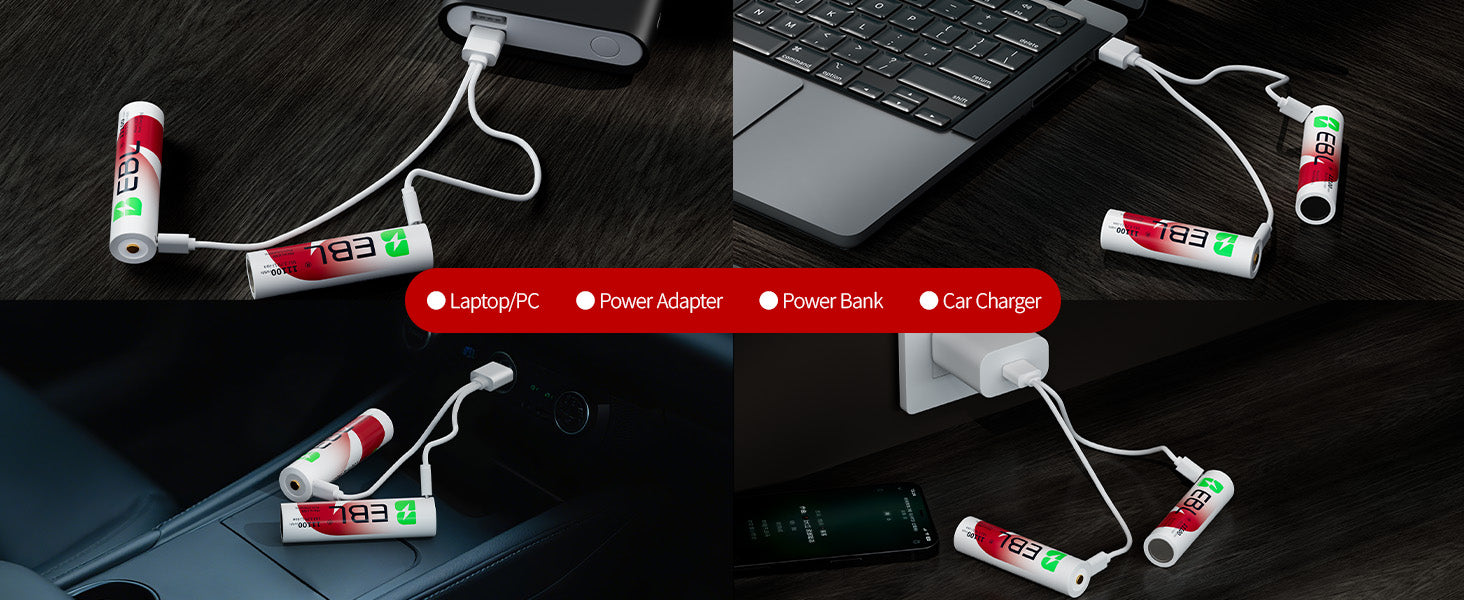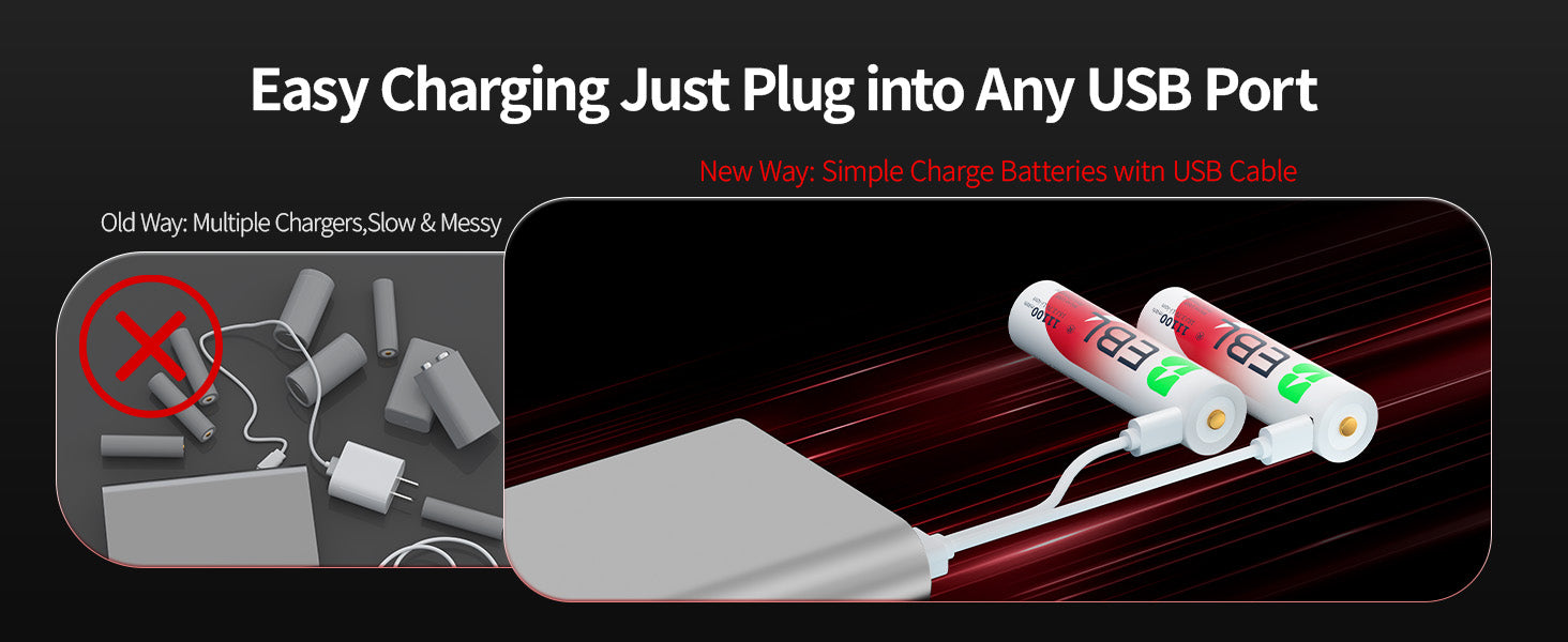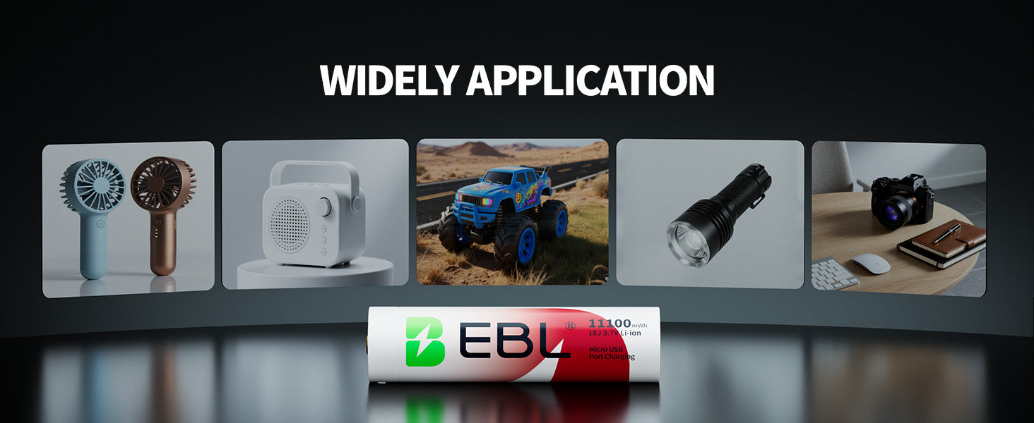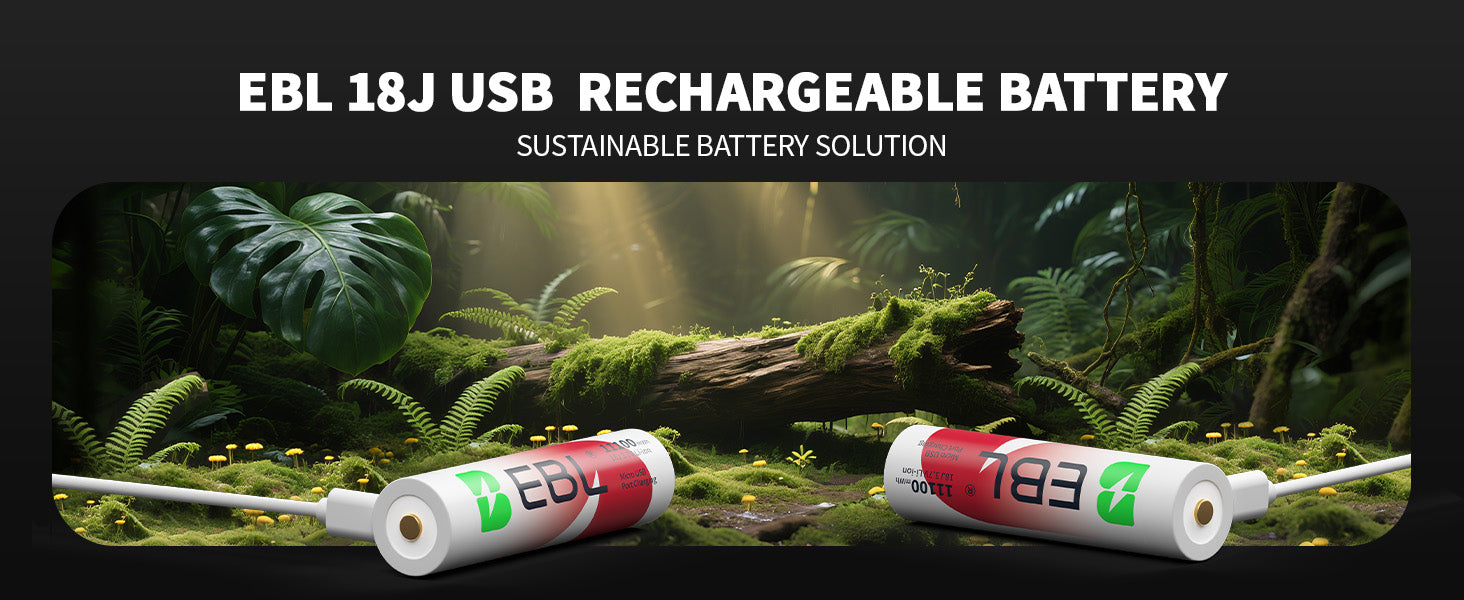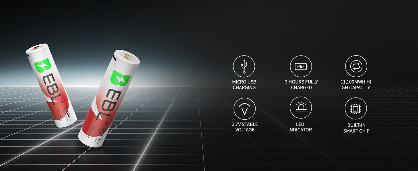 EBL 2Pcs 18J USB Rechargeable Batteries 3.7V 11100mWh