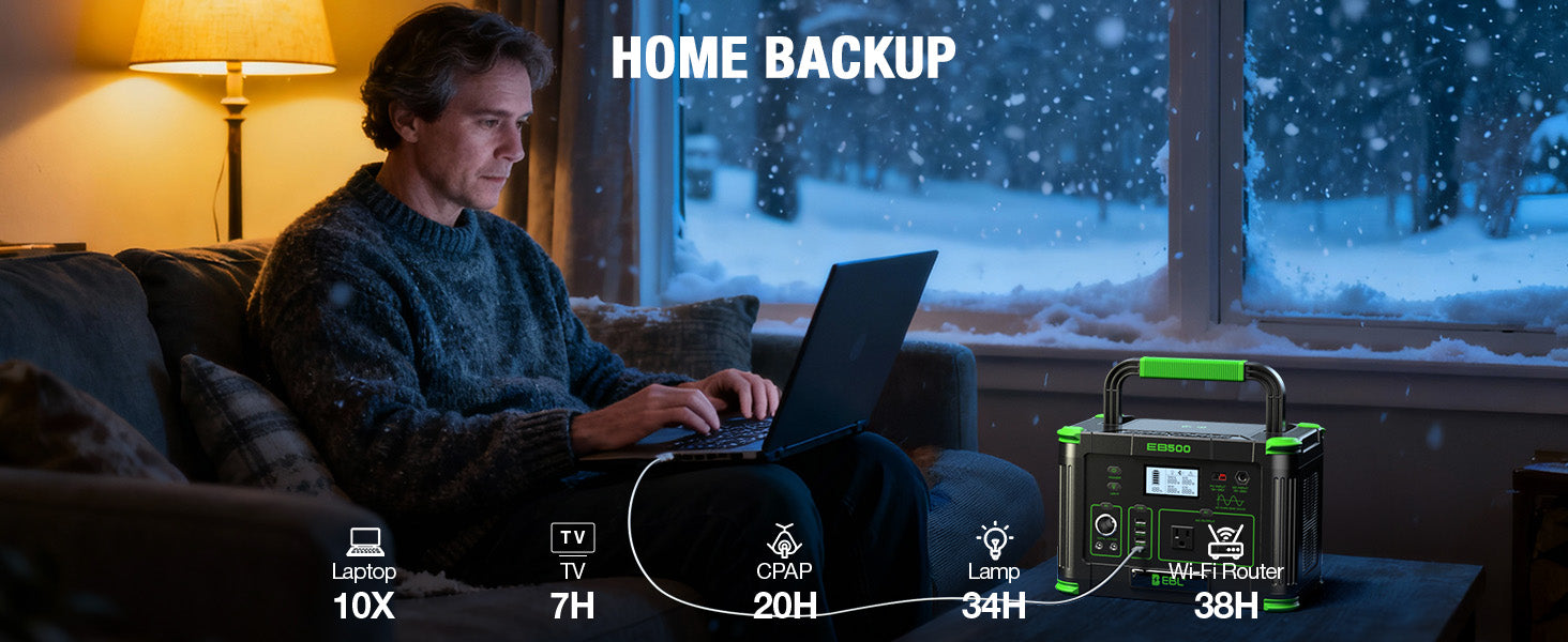 【500W High Capacity To Power Your Life】This EBL portable power station 500W with pure sine wave AC outlets 519Wh (140400mAh) can power most of your essential devices and small appliances, such as a phone, laptop, tablet, Macbook, light, fan, router, TV, projector, small blender, car refrigerator, drone, camera and CPAP machine, with rated power less than 500 watts. No gasoline or fuel needed, no smell, no fumes, and noiseless! Safe and convenient, ideal for both home use and outdoor trip.